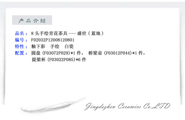 8頭手繪青花茶具盛世藍(lán)地