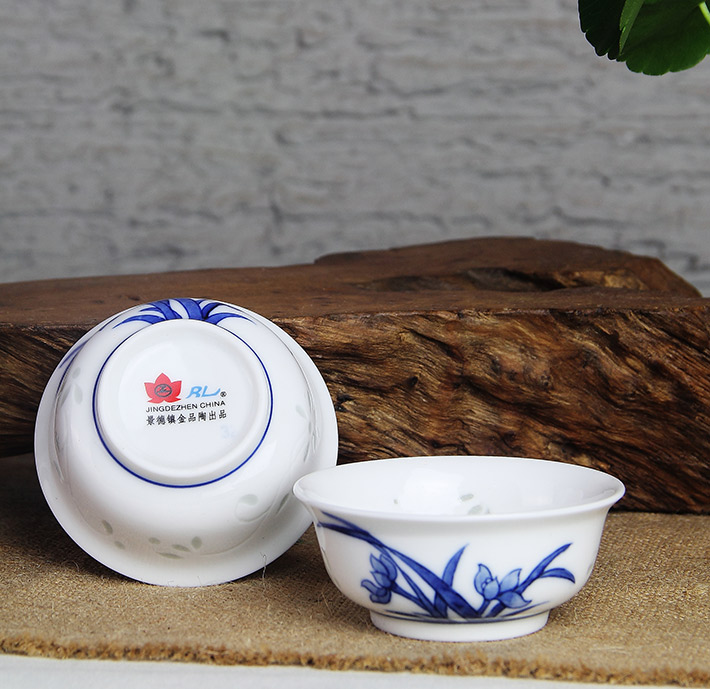8頭玲瓏半刀泥青花工夫茶具蘭花
