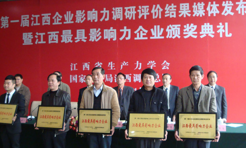 為了挖掘全省各行業(yè)在建設(shè)富裕和諧秀美江西中涌現(xiàn)出來(lái)的標(biāo)桿性企業(yè),打造行業(yè)形象典范,江西省生產(chǎn)力學(xué)會(huì)、國(guó)家統(tǒng)計(jì)局江西調(diào)查總隊(duì)聯(lián)合開(kāi)展了第一屆江西企業(yè)影響力調(diào)研評(píng)價(jià)活動(dòng)。并于2012年3月21日在江西南昌舉行了調(diào)研評(píng)價(jià)結(jié)果媒體發(fā)布會(huì)暨江西最具影響力企業(yè)頒獎(jiǎng)典禮。