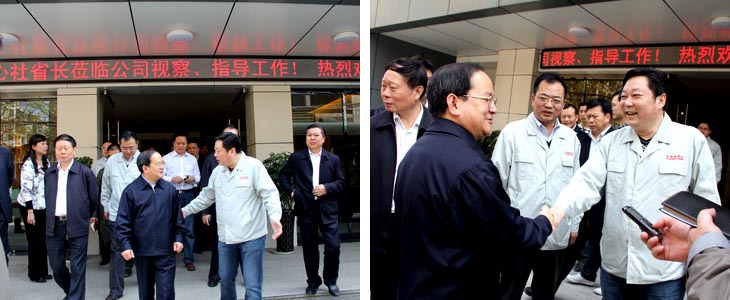 2012年4月6日江西省人民政府省長鹿心社一行在市委書記鄧保生、市長劉昌林等省市領(lǐng)導(dǎo)的陪同下來我司視察工作,鹿心社省長一行參觀了工廠生產(chǎn)車間、國瓷館,詳細了解了公司的生產(chǎn)運營情 況并對公司產(chǎn)品贊不絕口。視察期間,鹿心社省長對公司給予了高度評價:“你們公司為景德鎮(zhèn)爭了光,為江西爭了光,為國家爭了光。"并希望公司能牢牢抓住精品路線,抓住高端市場,搞活機制,繼續(xù)做的更大更好。