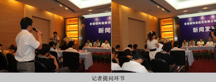 新聞發(fā)布會上,市人大副主任、市委秘書長余振泰,市政府副秘書長、市國資委黨委主任劉朝陽,市旅游局局長饒寧生,陶瓷股份公司黨委書記、董事長王耀、黨委副書記、總經(jīng)理夏躍中等相關(guān)人員就陶瓷股份公司近年來的發(fā)展、公司工業(yè)旅游發(fā)展、實(shí)施品牌戰(zhàn)略等方面回答了與會新聞媒體記者的提問。