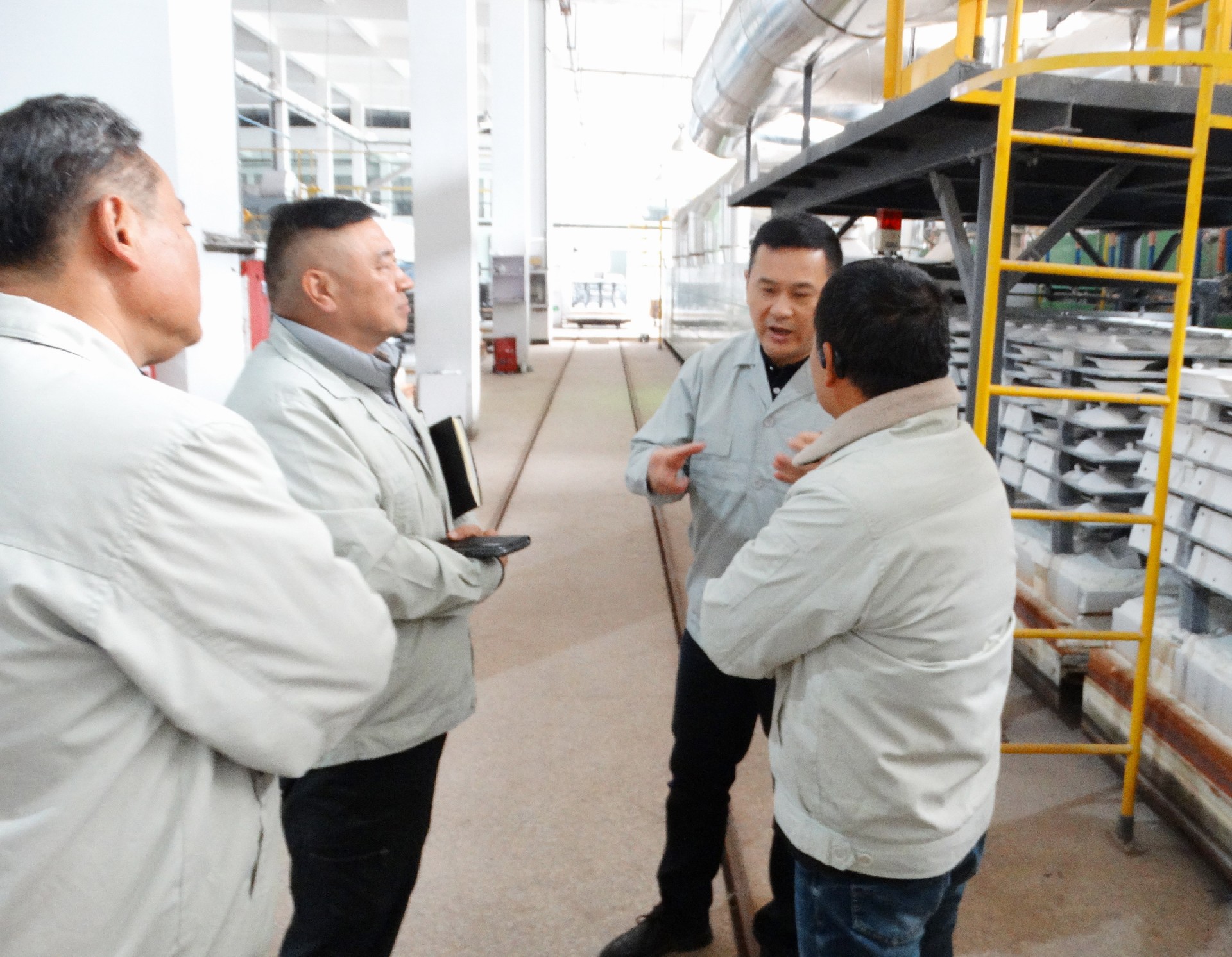 為深入學(xué)習(xí)宣傳貫徹習(xí)近平總書(shū)記考察江西重要講話精神,落實(shí)好省委、市委學(xué)習(xí)推廣“四下基層”的有關(guān)要求,進(jìn)一步推動(dòng)集團(tuán)主題教育走深走實(shí)。11月27日,景陶集團(tuán)黨委書(shū)記、董事長(zhǎng)鄧景揚(yáng)深入掛點(diǎn)聯(lián)系點(diǎn)紅葉公司一廠開(kāi)展“四下基層”活動(dòng)。集團(tuán)黨委委員、工會(huì)主席鄧必春、組織人力資源部部長(zhǎng)薛景玉等人隨同,紅葉公司總經(jīng)理章彧、紅葉公司黨總支專職副書(shū)記李俊、紅葉公司副總經(jīng)理邱鎮(zhèn)勇、一廠副廠長(zhǎng)劉靈敏陪同。