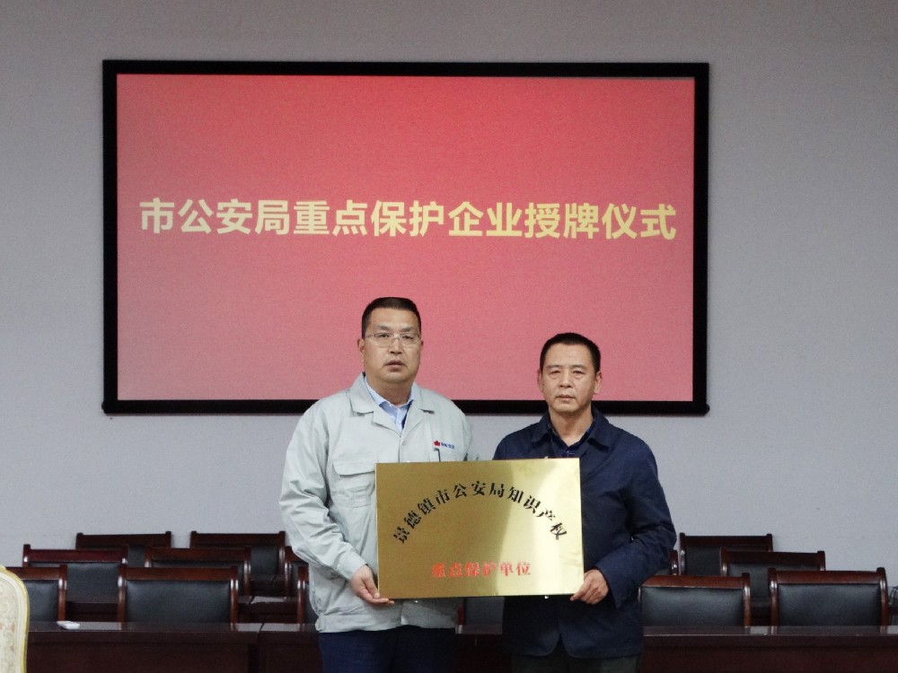 12月1日下午,市公安局在景陶集團(tuán)一樓會(huì)議室舉行重點(diǎn)保護(hù)企業(yè)授牌儀式。景德鎮(zhèn)市公安局食藥環(huán)偵查分局局長(zhǎng)周興妙,副局長(zhǎng)趙敬展,知識(shí)產(chǎn)權(quán)大隊(duì)長(zhǎng)徐廣志出席授牌儀式。景陶集團(tuán)黨委副書記、總經(jīng)理邢浩,副總經(jīng)理袁建國(guó)參加授牌儀式。