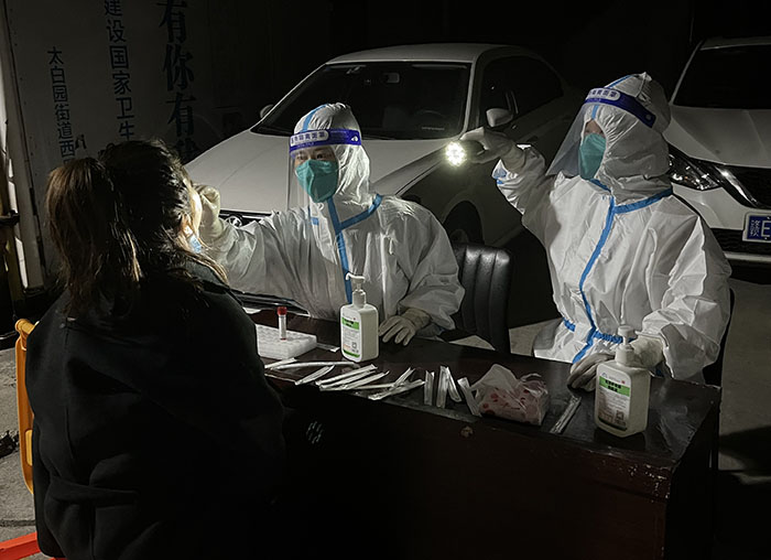 劉子希,他堅(jiān)持每天上午協(xié)助核酸檢測(cè)工作,下午挨家挨戶發(fā)放訂菜包,夜幕降臨時(shí)很多人都歇息了,而他還要到門(mén)崗當(dāng)值。